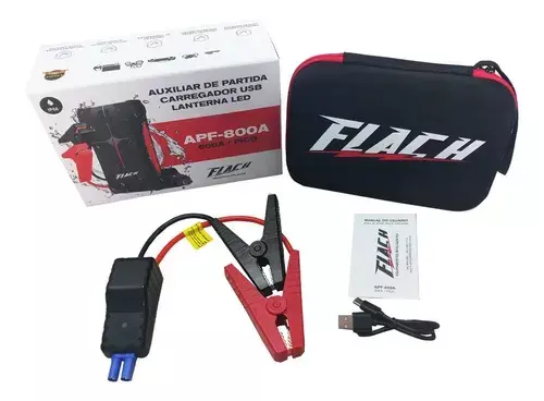 O Auxiliar de partida portátil de 12V e 800A é indicado para aplicação em veículos de 12 Volts. Possui auxiliar de partida de 800A, cabo inteligente para auxiliar de partida e cabo micro USB para realizar recargas.